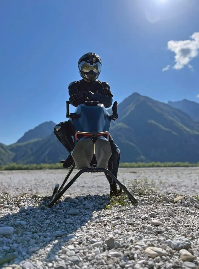 The Airbike is claimed to be seven times lighter than a conventional motorcycle “thanks to the use of advanced carbon fiber materials, 3D printing, and a minimalist approach.”