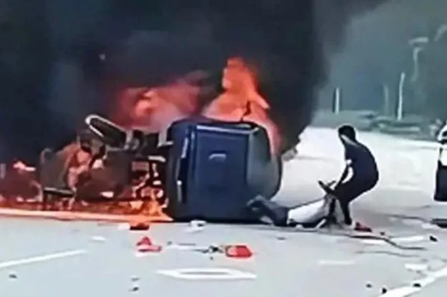 In the Chinese city of Shaoguan, 35-year-old civil servant Zhong Wei saved a driver from a car engulfed in flames. The incident occurred after a car collided with a gasoline tricycle. Seeing the flames, the official, who works as a team leader in the city government's agricultural department, rushed to help.