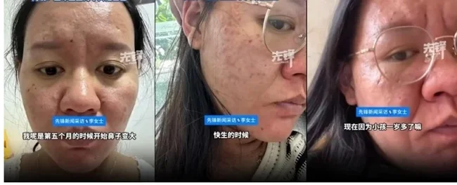 However, by the fifth month of pregnancy, Lee noticed strange changes on her face: her nose had become much larger, fine wrinkles had become noticeably deeper. One morning, she realized that she had changed to such an extent that she could not recognize herself in the mirror. But this was only the beginning. As she went through the second and third trimesters of her pregnancy, Lee experienced more physical changes. Age spots, known as “pregnancy spots,” appeared on her cheeks. Her hands and feet were swollen, and although doctors told her that these changes were natural, she could not recognize herself. Li Wei made changes to her diet, cutting back on sugar and fat, and began exercising to help alleviate the changes.