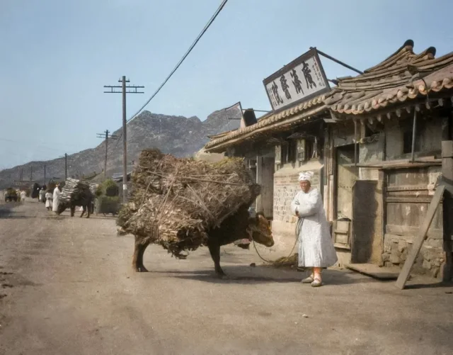A patient arrives by oxcart at a Soviet hospital in Chinnampo, North Korea, May 1947.