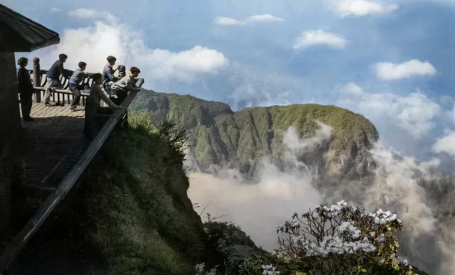View of the mountains from the Sleeping Clouds Monastery in southwest China, Sichuan, 1962.