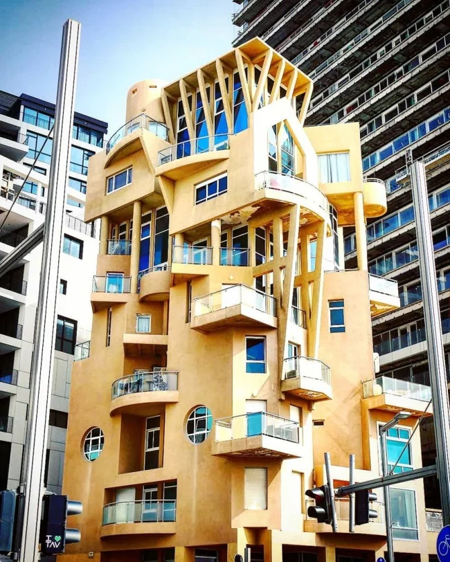 Among the strict buildings of Tel Aviv, the "Promenade House" stands out. This is an architectural whim that appeared due to a newspaper joke. In the 1980s, architecture professor Zvi Hecker drew a fantastic project for a newspaper column. And a local businessman, fascinated by the sketch, offered to finance the construction. Contrary to all norms and standards, the "Promenade House", resembling a tree with branches-balconies, was built in 1993.