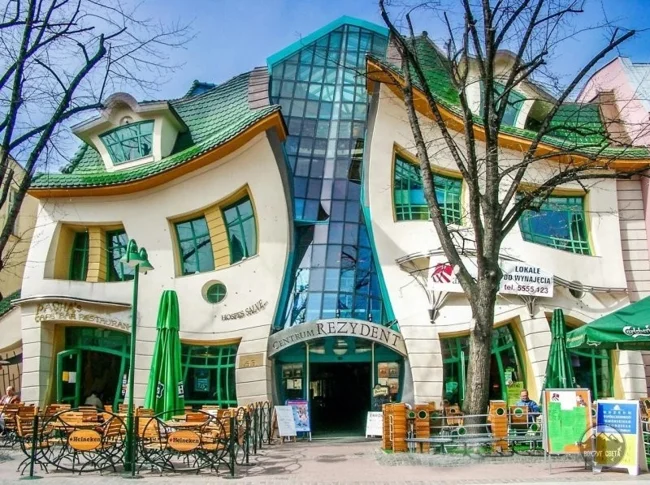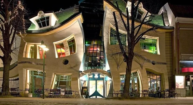 The Crooked House (Krzywy Domek) has become one of the most photogenic attractions of the Polish resort of Sopot. Built in 2004 according to the design of the Szotynski architects, it looks as if it came from the pages of a fairy tale illustration. Or climbed straight out of a surreal dream.