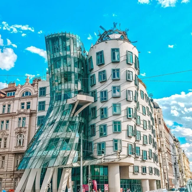The Dancing House (Czech: Tančící dům) has become one of the most unusual buildings in Prague. Designed in 1992 by Croatian-Czech architect Vlado Milunic in collaboration with Canadian deconstructivist Frank Gehry.