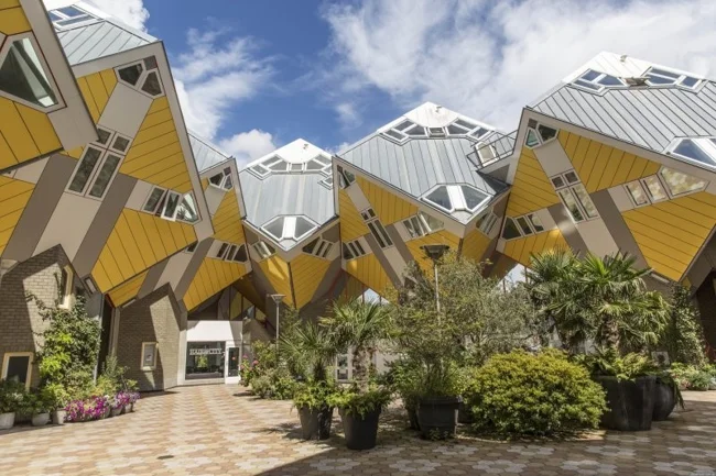 These innovative buildings in Rotterdam, Netherlands were designed by architect Piet Blom. Each of these unique houses represents a tree, and all the houses together are supposed to represent a forest. Each cube is a three-story residential building, where the walls and windows are located at angles unthinkable for classical architecture. Blom wanted to create a “city within a city,” where each cube symbolizes an abstract tree, and the entire complex is an urban grove.