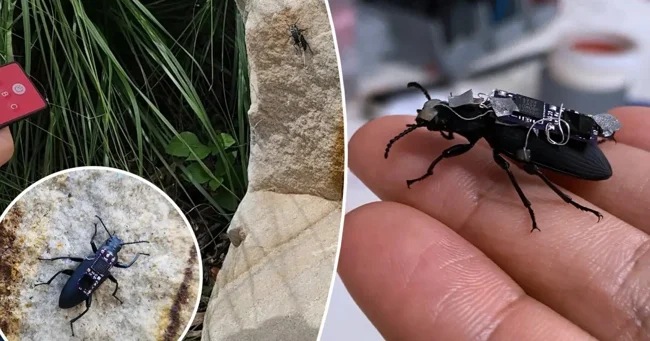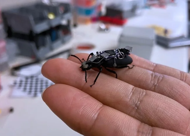 The team has developed a revolutionary project that equips darkling beetles with removable backpacks. These devices control the insects' antennae and front wings using electrodes.