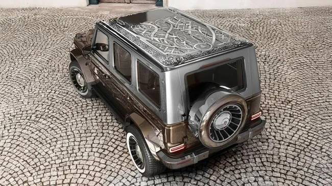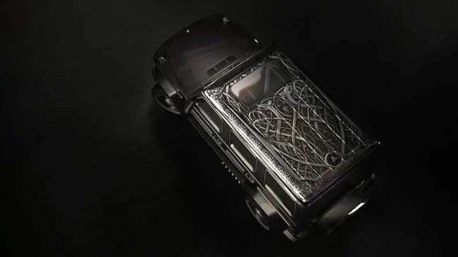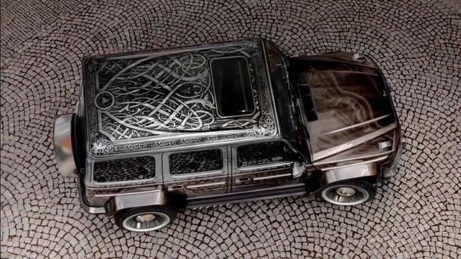 The entire roof of the SUV is covered with hand-made engraving. How much time the craftsmen spent on applying the ornament is not specified this time. However, in 2024, Carlex Design showed a G-Falcon project decorated in a similar way, and it was reported then that the engraving took several years.