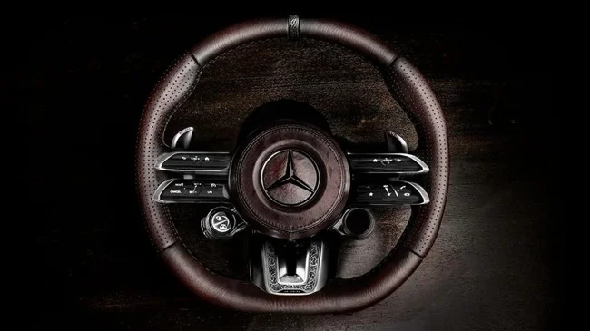 The sides of the Gelendvagen and some interior details are decorated with inserts with a pattern in the same style, for example, the zero mark on the steering wheel is made of engraved metal. The car is equipped with a custom body kit with new bumpers and original wheel rims. Judging by their design, they were borrowed from another major Carlex project called G-Vintage.