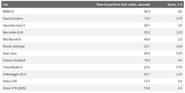 It turned out that the participants in the experiment spent the least time on the tasks in the Volvo V70 without sensor elements - on average, it took 10 seconds. The drivers of the Chinese electric car MG Marvel R with a large monitor in the middle had to spend the most time - 44.9 seconds. During this time, the car managed to travel almost one and a half kilometers. It is noteworthy that two modern models with a touch screen showed quite close results to the 2005 car. Thus, on the Dacia Sandero (the European version of Renault Sandero), the tasks took an average of 13.5 seconds, and on the Volvo C40 - 13.7 seconds.