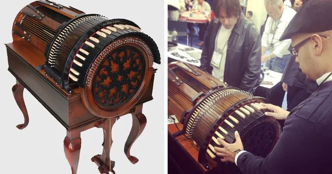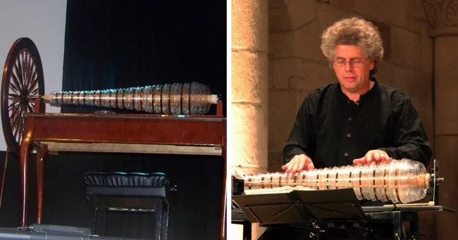 This is an extremely rare musical instrument made of glass hemispheres placed on a special axis. It was created in the 17th century. Today, it is almost impossible to find a glass harmonica at concerts.