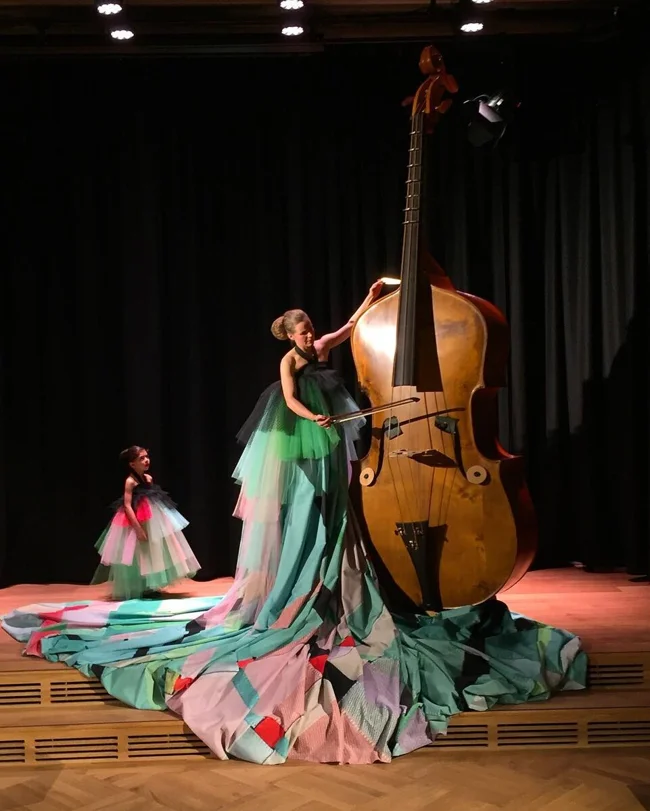 The uncello is the least similar to a musical instrument. It is made of wood, pegs, strings and an aquarium, which amplifies the sound during the game.