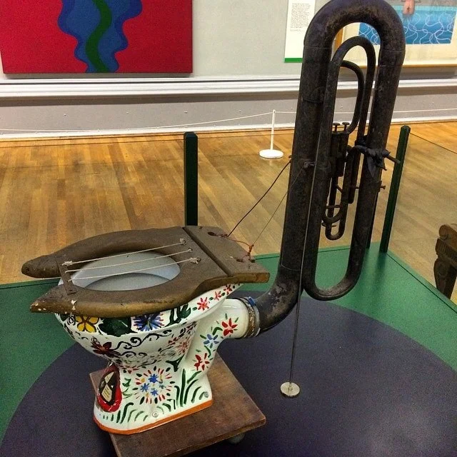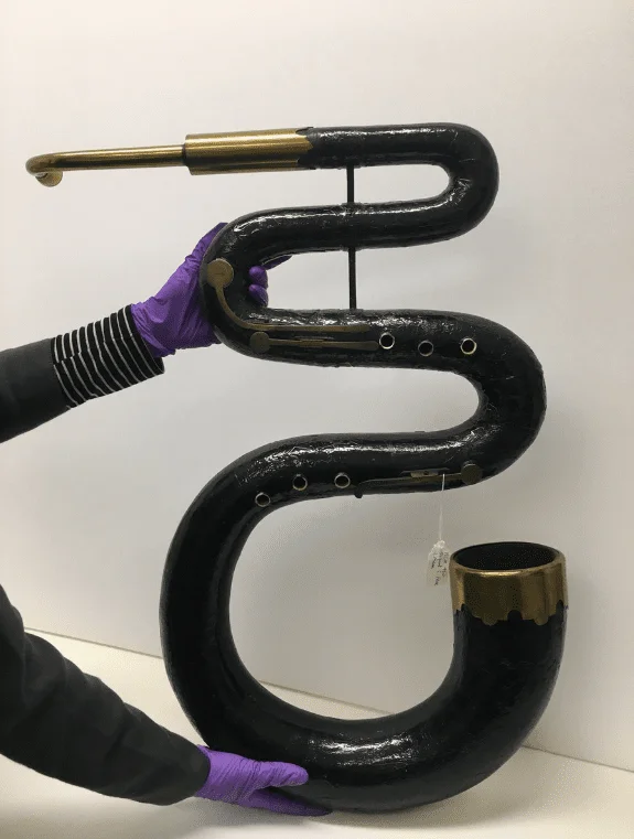 This instrument functions on the principle of a bass instrument of the saxhorn family - the euphonium. It also produces the extremely funny sounds of water pouring into a faience bowl under high pressure. This unusual instrument was specially made for the Royal Liverpool Philharmonic Orchestra concert, which took place on April 1, 1960.