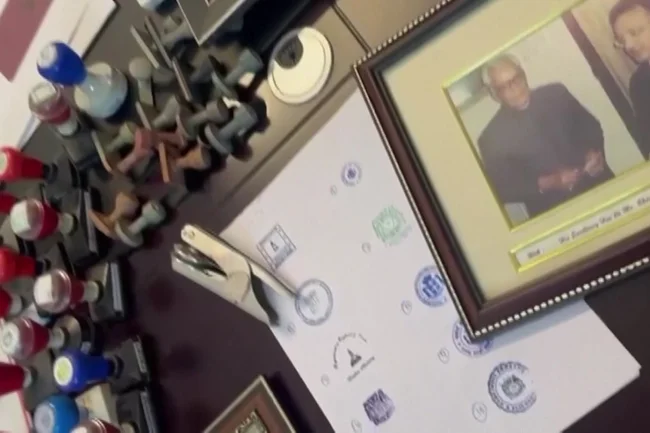 During a search of an illegal embassy in the Indian city of Ghaziabad, police found a bunch of fake seals.