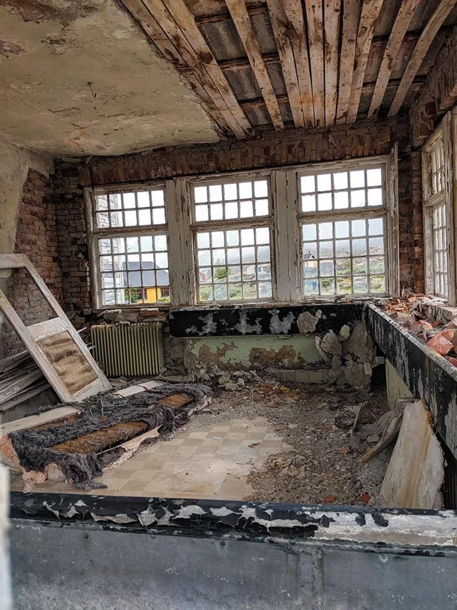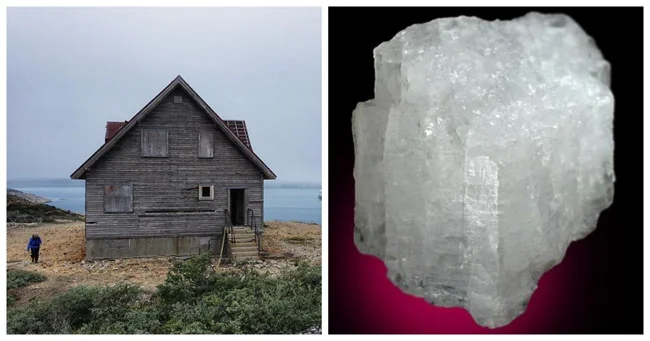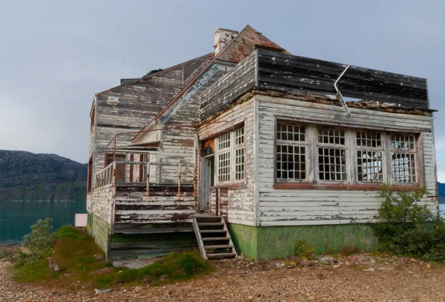 At the southern tip of Greenland lies the old mining town of Ivittuut. Now it's just half-ruined houses, barns, and rusting pieces of machinery. Cryolite, an extremely rare mineral used to extract aluminum from bauxite, was once mined here.