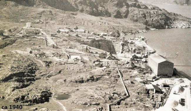 During WWII, when Germany occupied Denmark, the Allies urgently sent a military garrison to Ivittuut, since cryolite was a strategic resource for aircraft construction. The Americans built a naval base 5 kilometers from the mine (Kangilingnguit), and the coast guard set up a camp across the fjord. To hide the location, soldiers were forbidden to photograph the village or write letters to their families.