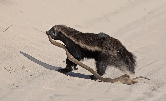 The second gift of evolution is immunity to poison. Cobras and mambas - the most deadly snakes in Africa - are just a meal for the Honey Badger. A quarter of the Lord's entire diet consists of snake meat. And all thanks to one small mutation in DNA, which turns poison into water.