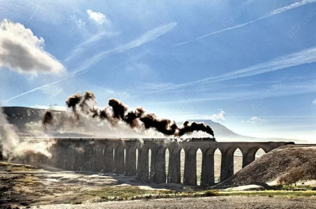 Railway on a viaduct. Settle Carlisle, Yorkshire, 1986.