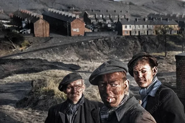 Three generations of miners in a Welsh mining town. Great Britain, 1950.