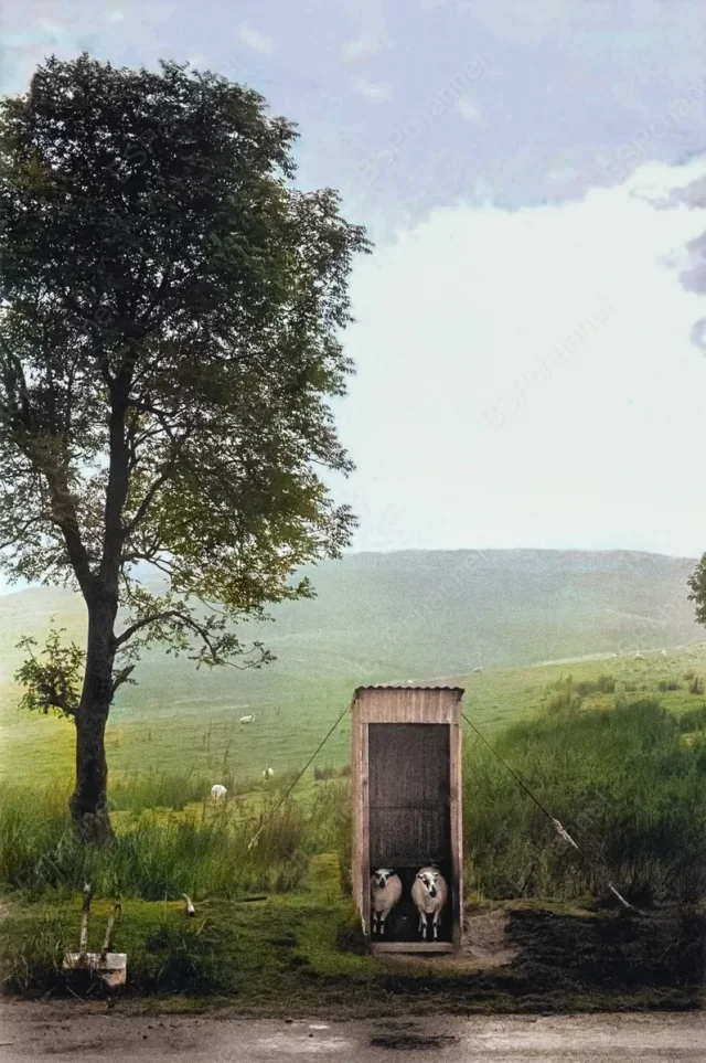 On plywood from a hill. Wales, UK, 1977.