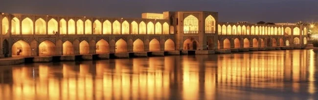 It is 133 meters long and 12 meters wide, which is enough for caravans and processions. 23 arches made of stone and brick are decorated with turquoise tiles in traditional Persian style. The bridge works as a dam, regulating the flow of water for irrigation of the famous Isfahan gardens.