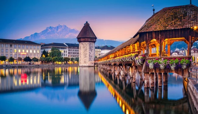 In the heart of Lucerne, Switzerland, over the calm waters of the Reuss River, rises the Chapel Bridge, the oldest wooden covered bridge in Europe, whose history began in 1365. Built as part of the city fortifications, it served not only as a crossing, but also as a defensive line, protecting Lucerne from invasions.