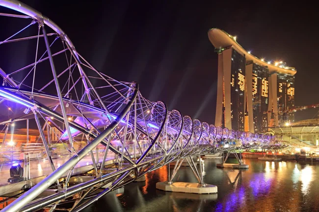 In the futuristic Marina Bay district, the Helix pedestrian bridge, one of the most unusual structures in the city-state, twists like a graceful steel ribbon. Opened in 2010, this 280-meter masterpiece in the form of a double helix, created jointly by Australian and Singaporean architects, embodies the very essence of life – the structure of human DNA.