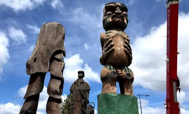 The town of Tokoroa features wooden sculptures inspired by Maori culture. For example, the "Needle" symbolizes the creator god.
