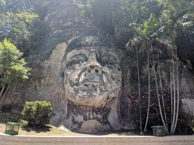 The 12-meter bas-relief on the rock is dedicated to the Taino leader Mabodamake, who fought the Spanish in 1511. Artist Isaac Laboy created it in 2000, stylizing it as an ancient carving.