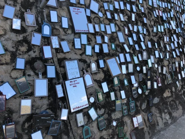On the VR Koirala Highway, there is a retaining wall covered with thousands of mirrors. They are left as an offering to the goddess Seti Devi Mata to avoid accidents.