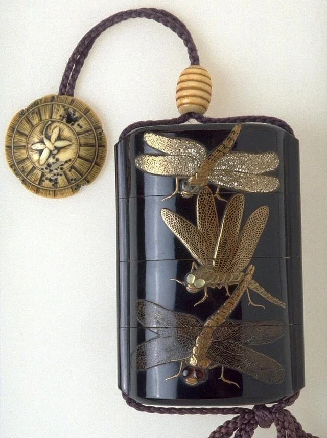 A small multi-tiered box (usually 5–10 centimeters) worn on the obi belt along with a netsuke (counterweight). It was used to store medicine, seals, or tobacco. It peaked in popularity during the Edo period (1603–1868), but production continued into the 19th century.