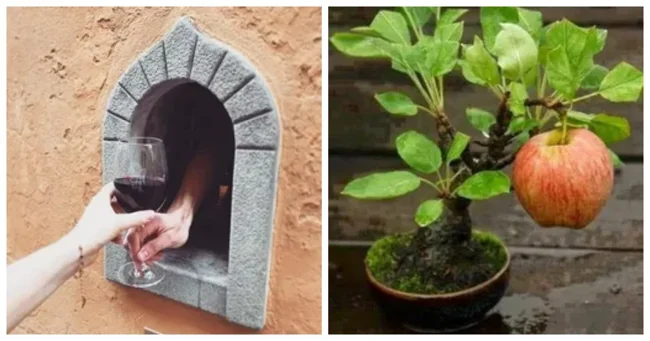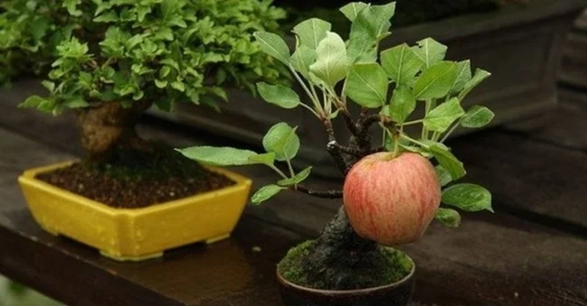 A miniature bonsai apple tree that managed to grow a regular full-size apple. The tree, only 30-40 centimeters high, produced fruit comparable in size to those that grow on standard apple trees.