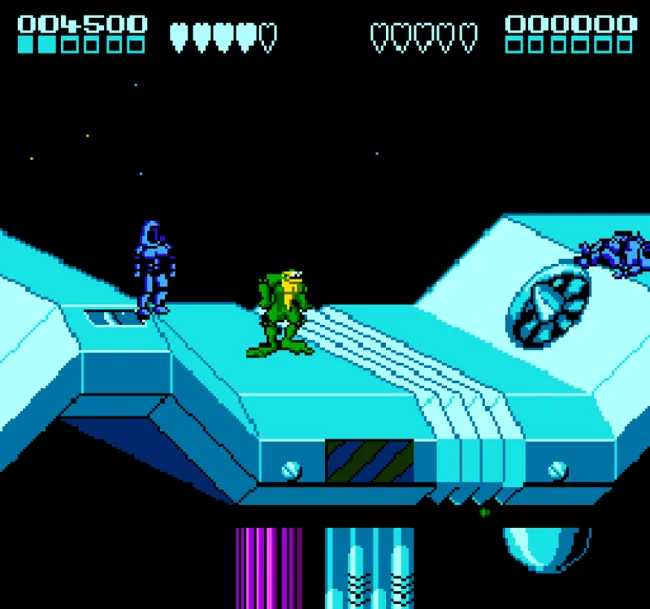 Battletoads and Double Dragon — amphibian heroes crushed enemies with head and foot blows, and the legendary level on high-speed scooters entered the history of gaming. Brothers Billy and Jimmy dealt with bandits with brass knuckles and chains, and the final battle on the roof was forever remembered by players.