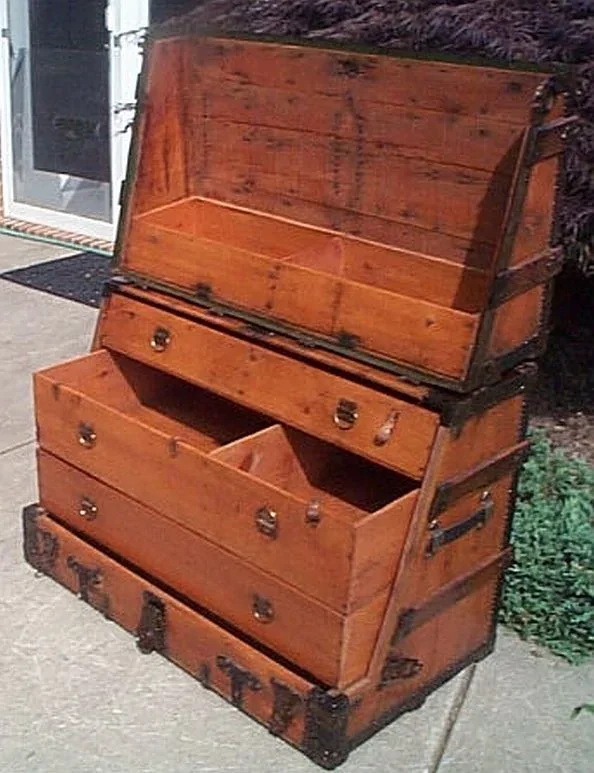 In an era when transatlantic voyages took weeks, and rich ladies carried with them up to 30 dresses, a brilliant hybrid appeared - a trunk-dresser (steamer trunk dresser). This was not just a luggage item, but practically a portable bedroom for aristocrats with drawers, shelves, hangers and secret compartments. Such gadgets were actively used by transatlantic passengers, actresses and diplomats.