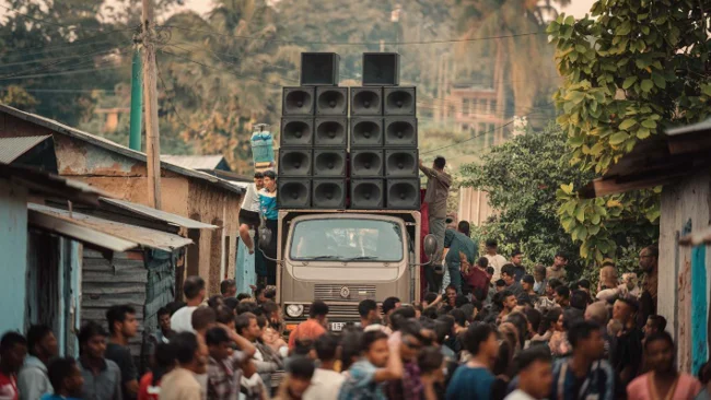 Usually young people chip in to buy such a party. They chip in 500,000 rupees to rent a truck. At the same time, the city or village districts compete with each other on the holidays to see who can play the loudest music. The louder, the better. If there are 14 districts in a village, they can hire 14 sound systems at once, and to outrun each other, they can hire several trucks. So, in one city, 114 such sound machines can work at the same time!