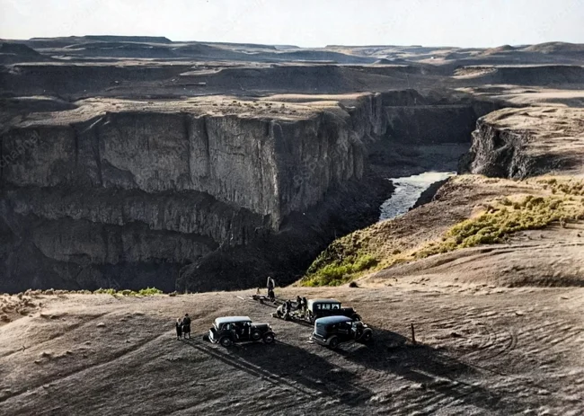 A picnic on the edge of the Palouse River Canyon in Washington State, 1920s.