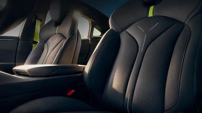 The architecture of the Xpeng P7 interior is generally typical for modern battery cars from China. The laconic front panel is combined with a central tunnel, on which there is not a single button, and a large central screen. Nevertheless, the developers tried to add originality. For example, the P7 is equipped with an angular steering wheel and seats with integrated headrests, which will receive active lateral support rollers. They can automatically change their position in the range of 30 mm in 10 milliseconds.