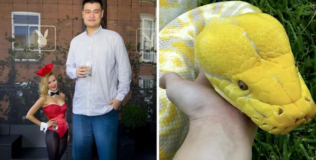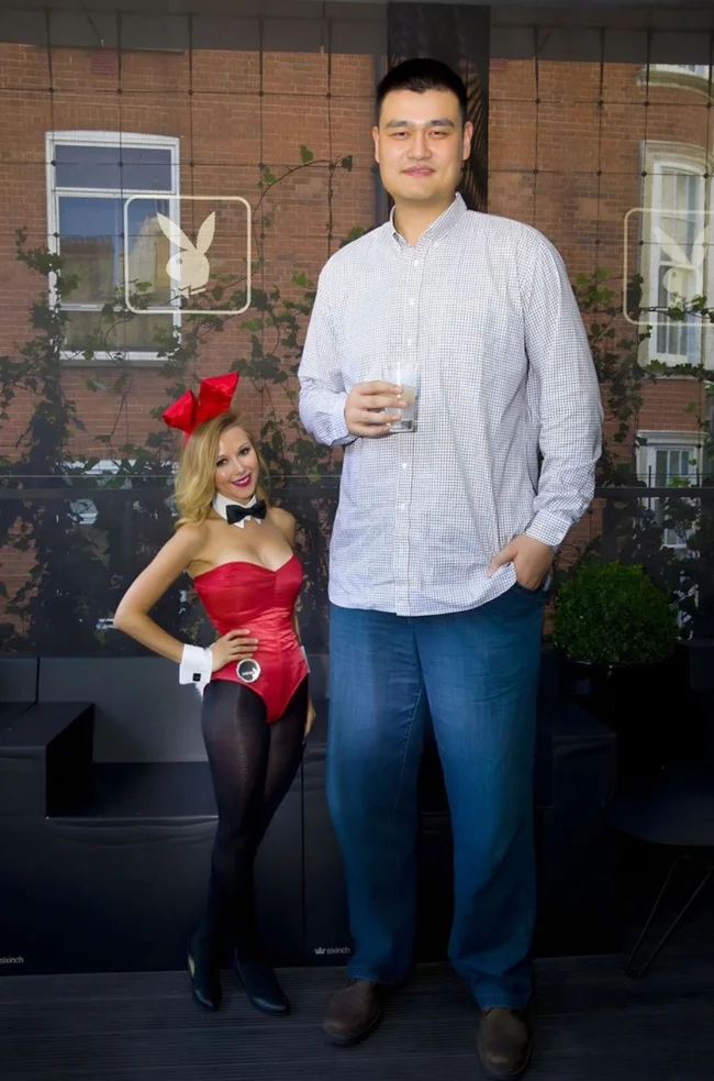 Incredible difference: the "Playboy Bunny" girl barely reaches the waist of the Chinese basketball player, who is 229 tall cm