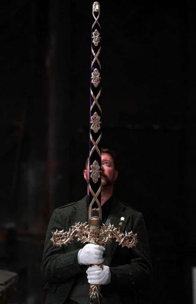 A photo of the ceremonial sword "Elizabeth", which was named after the mother of the new British monarch Charles III and given to him as a symbol Scotland