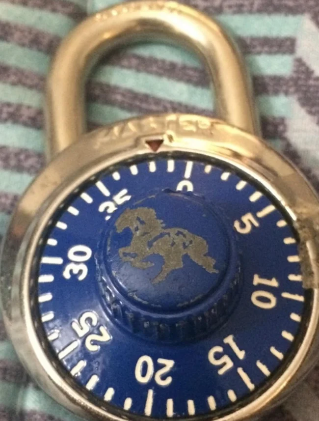 A regular scratch on a lock, in the shape of a horse. Not done on purpose, just happened