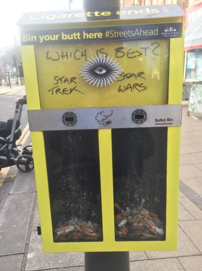 Don't throw cigarette butts on the street. There are special ashtrays for that