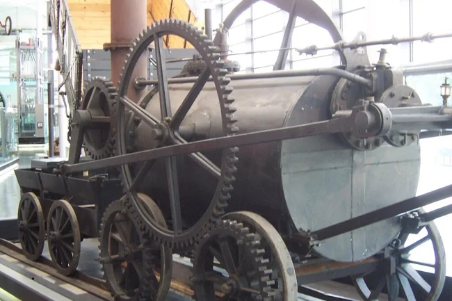 Trevithick's 1804 locomotive. This full-scale reconstruction is in the National Waterfront Museum in Swansea