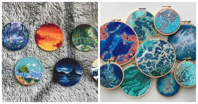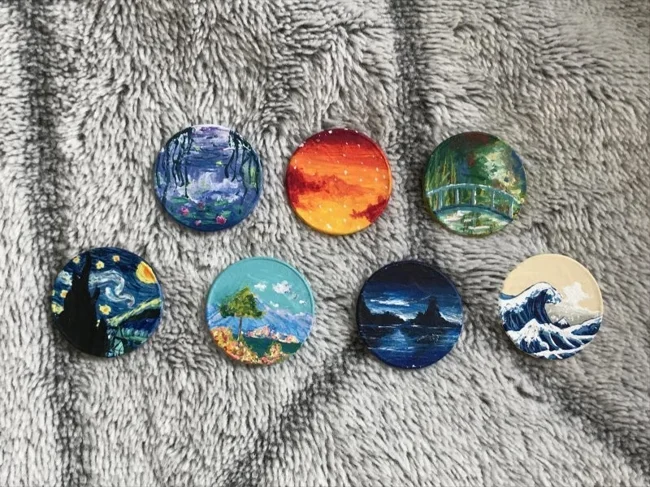 7. An artist created a collection of miniature copies of famous paintings, each of which was painted with acrylic on penny