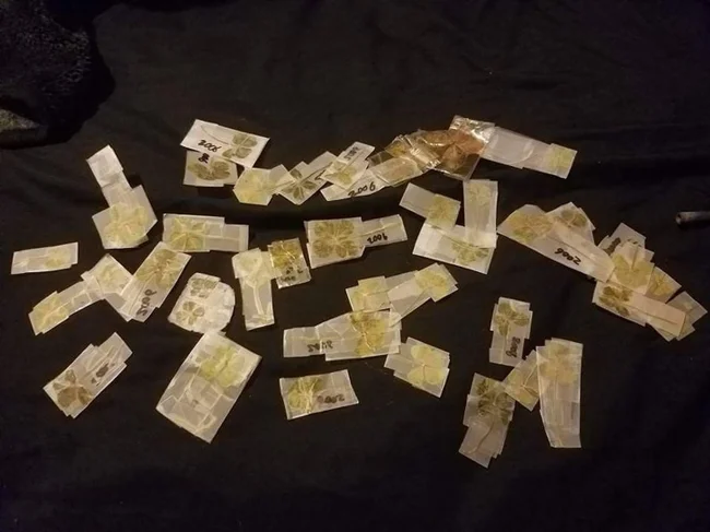 11. Collection of luck: 41 four-leaf clovers and one unique five-leaf clover