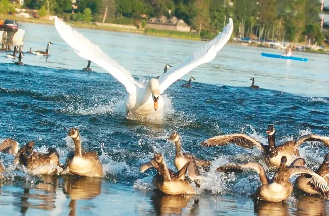 And this is not just a "gentle giant". The mute swan is a fighting machine for destroying rivals and threats. If the swans decide to occupy a part of the pond and build a nest there, they will destroy all those who dare to interfere with them. Like Bonnie and Clyde, a pair of swans raid their neighbors on the pond. Adult birds: ducks, geese, coots - they drown, pinch, beat with their beaks and wings. They break other birds' nests, destroy their clutches, and kill their chicks.
