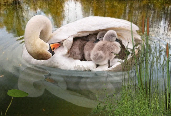 At the same time, swan parents are excellent. Both mother and father watch over their offspring, protect them, and even ride them on their backs!
