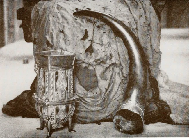 Dunvegan Cup, Fairy Flag, Rory More's Horn (photo taken shortly before 1927)
