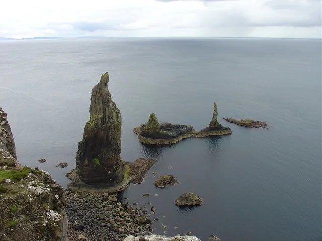 The "Maidens of MacLeod" are cliffs on the Isle of Skye where, according to legend, the wife and three daughters of Ian Ciar, the 4th chief of the MacLeod clan, perished