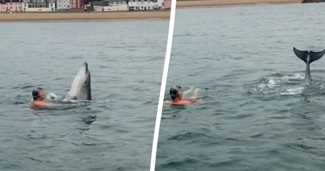 "I've seen dolphins before, but this is one I'll never forget," the British woman said.