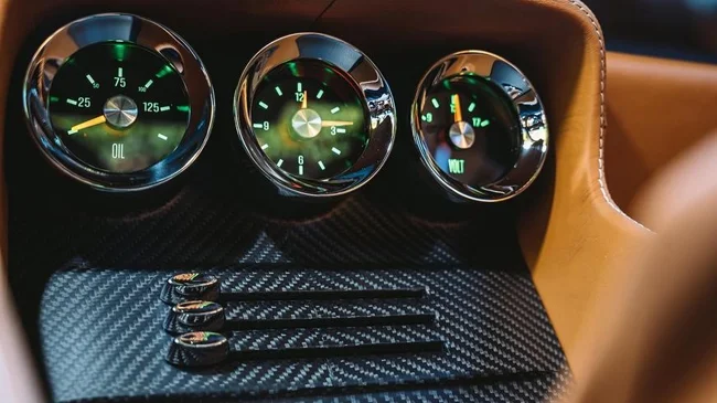 The new carbon body of the Octavia, in the design of which the creators of the restomod tried to preserve the original spirit, is combined with a custom chassis from Roadster Shop. It uses Fox coilovers and specially developed Ringbrothers new control arms. The coupe is decorated with unusual wheels from HRE, and 6-piston Brembo mechanisms are responsible for braking. As in the body design, the interior style retains the feeling of the original DBS, while the interior is complemented by a number of unusual parts printed from steel on a 3D printer. Among them are the selector handles of the gearbox and parking brake, for example. The sun visors are equipped with an auto-dimming function.