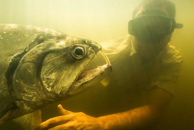 Any fish that is unlucky enough to be born smaller than a meter is almost certainly destined to become a meal for an Amazonian vampire. The hydrolycus takes even large fish without any problems - up to half its size. That is, about the size of a hand! One confident jerk, a bite - and the victim is already strung on stake-like teeth and helplessly flutters in the predator's mouth. Because of their long fangs, by the way, hydrolycuses were called bloodsuckers. But bodily fluids are of little interest to fish - they swallow their prey whole. By the way, the toothy monster is practically safe for humans. Hydrolykes do not attack people without reason - we are not their type. You can only get hurt by a payaru by accident, during fishing, and even then through carelessness.